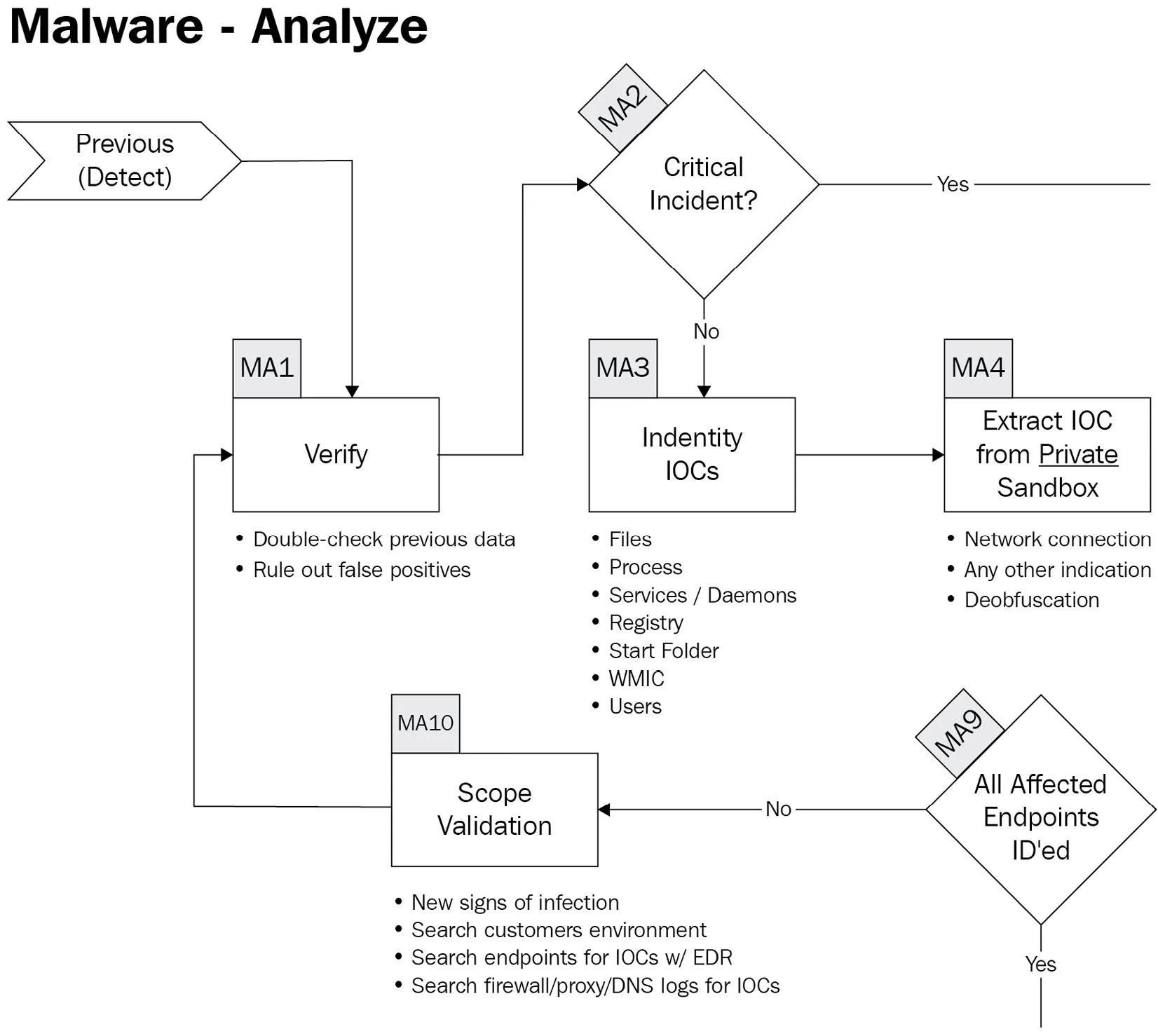 Based on the identified artefacts, new areas of investigation may be discovered. These pivot points can lead to new insights and help further refine the incident’s scope. After this step, the process loops back to the documentation phase, incorporating the new findings.