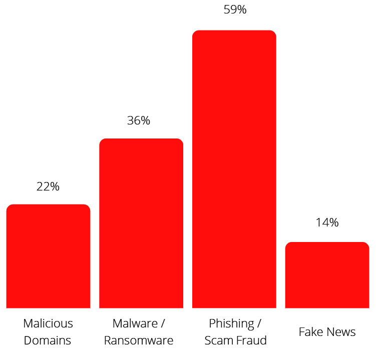 Distribution of the key COVID-19 inflicted cyber threats based on member countries’ feedback (source: Interpol’s Cybercrime COVID-19 Impact report)